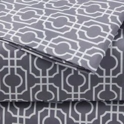 4-Piece Grey Labyrinth Print Microfiber Essential Sheet Set, Queen