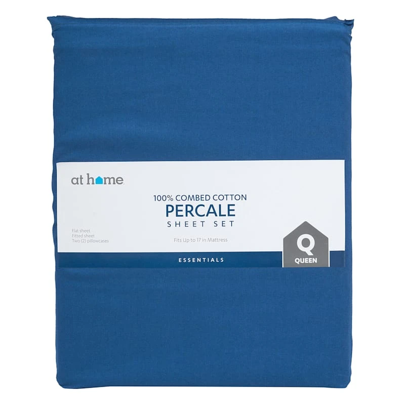 Enjoy a peaceful night’s sleep with our 4-piece king deep blue sheet set crafted of 100% combed cotton percale. The calming deep blue hue gives a refreshing, relaxing and contemporary feel to any bed. King set includes: one flat sheet, one fitted sheet and two pillowcases.