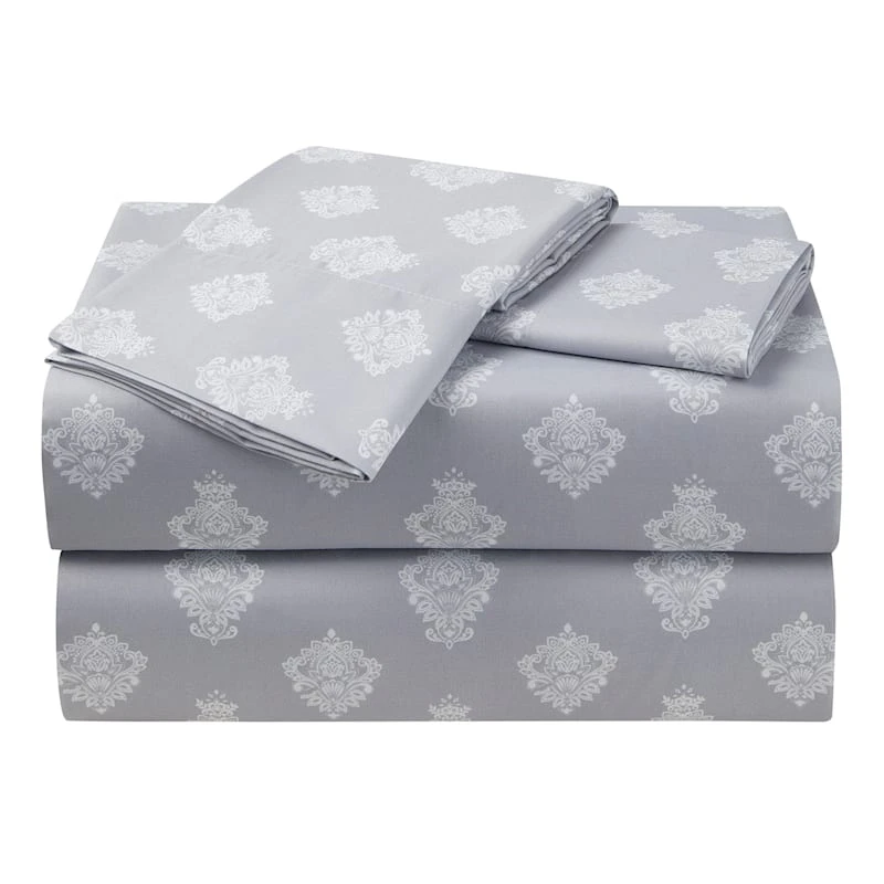 Be the first to review “4-Piece Grey Damask Print Microfiber Essential Sheet Set, King” Cancel reply
