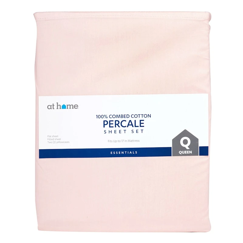 Enjoy a peaceful night’s sleep with our 4-piece king light pink sheet set crafted of 100% combed cotton percale. The calming pink hue gives a refreshing, relaxing and clean feel to any bed. King set includes: one flat sheet, one fitted sheet and two pillowcases.