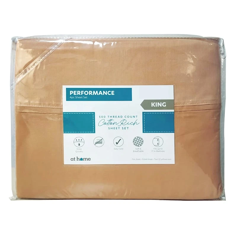 Apply this clay 500 thread count polyester and cotton king sheet set and relax into a beautiful night’s sleep. With a nice selection of solid hues, you can refresh the look to your master bedroom or guest room with ease. We feel itโs a plus that these sheets have deep pockets, and fit comfortably over mattress toppers and thicker mattresses, up to 18”. Includes fitted sheet, flat sheet; twin size comes with one pillowcase, and all larger sizes come with two.