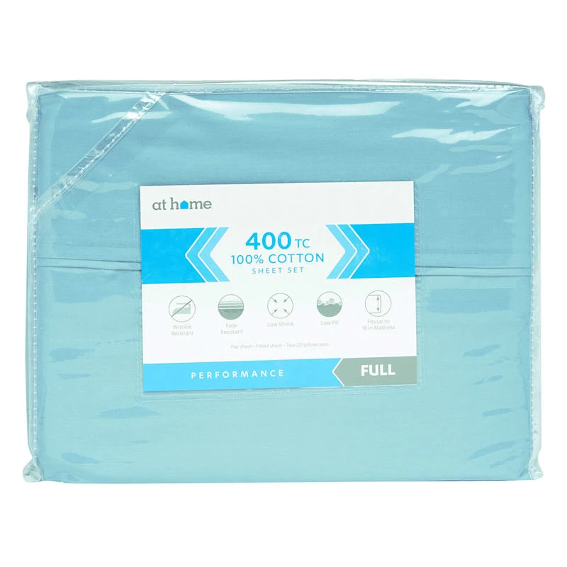 Apply this royal blue 400 thread count cotton Performance queen sheet set and relax into a beautiful night’s sleep. With a nice selection of solid hues, you can refresh the look to your master bedroom or guest room with ease. We feel it’s a plus that these sheets have deep pockets, and fit comfortably over mattress toppers and thicker mattresses, up to 18”. Includes fitted sheet, flat sheet; twin size comes with one pillowcase, and all larger sizes come with two.