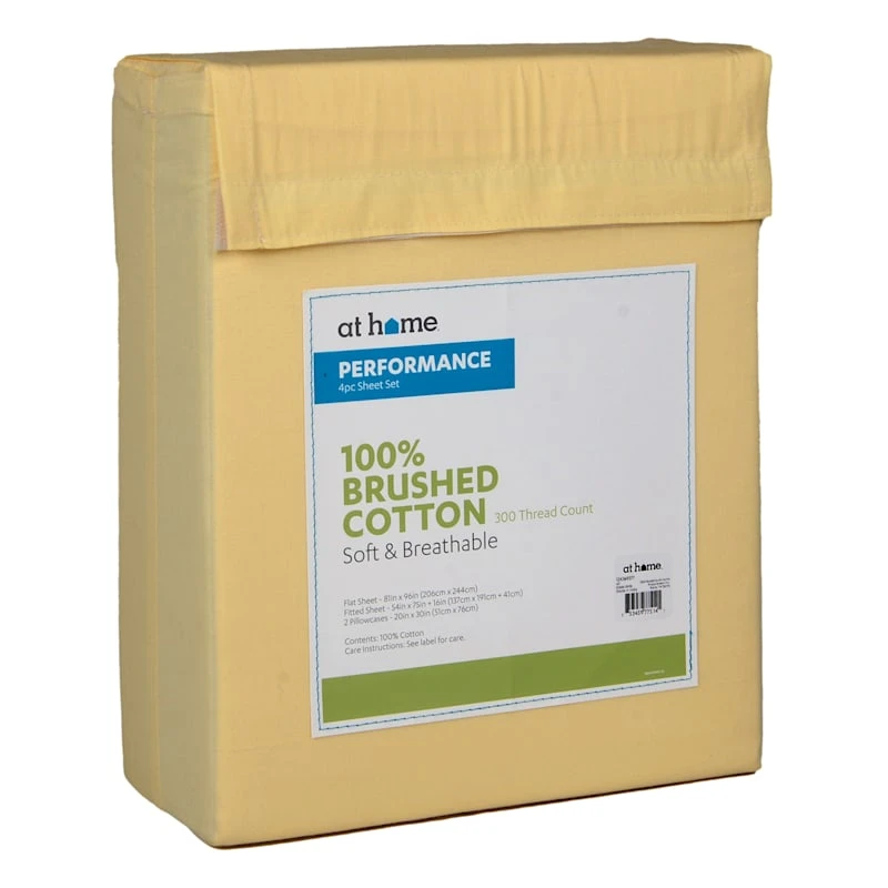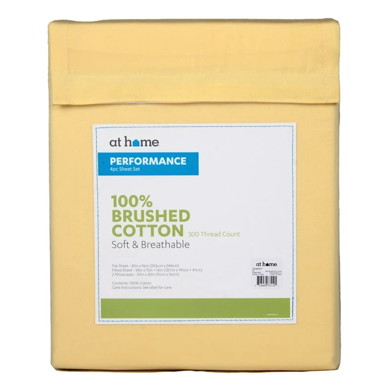 4-Piece Yellow 300 Thread Count 100% Cotton Percale Brushed Sheet Set, Twin