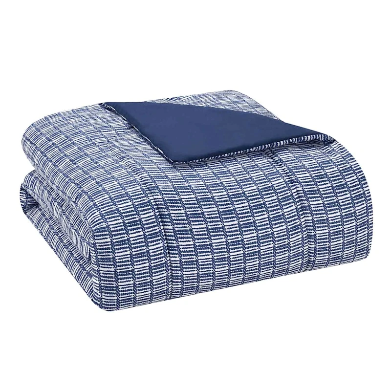 3-Piece Navy Blue Windowpane Check Comforter Set, Full/Queen