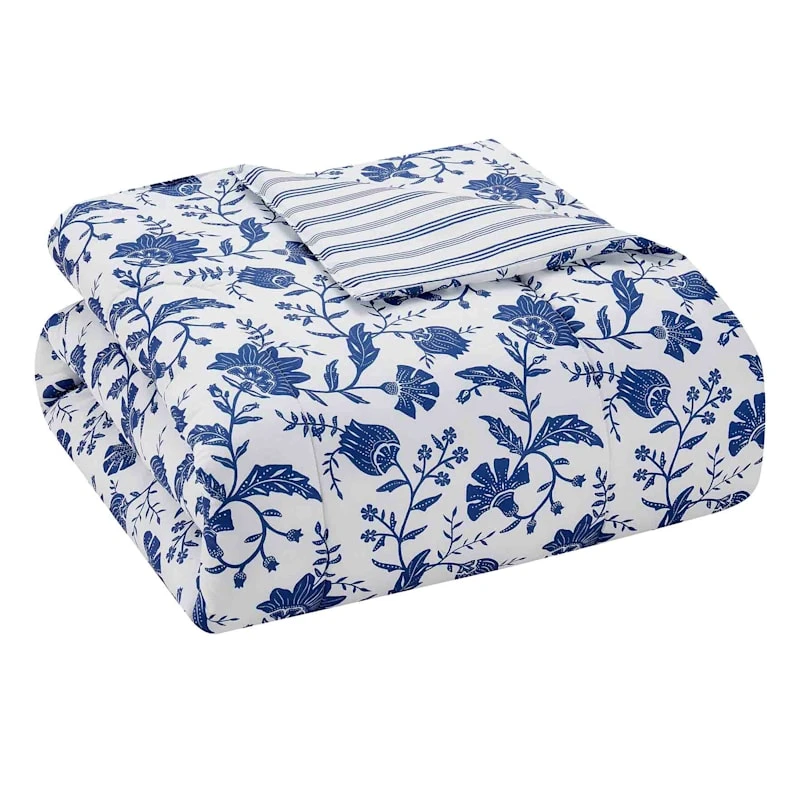Be the first to review “8-Piece Regatta White & Navy Floral Reversible Striped Print Comforter Set, Queen” Cancel reply