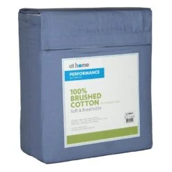 4-Piece Blue 300 Thread Count 100% Brushed Cotton Percale Sheet Set, King