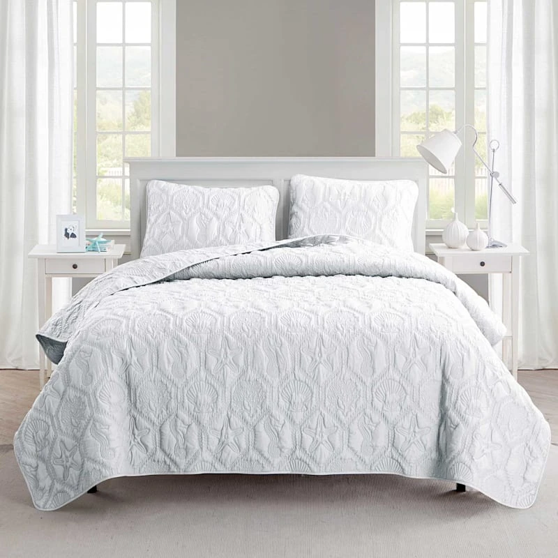 The VCNY Home Shore embossed king quilt set has everything you need to bring a cool, coastal vibe to your space all year long. Featuring a subtle, embossed sea life pattern, the 3-piece bed set includes a quilt and coordinating shams for a complete staycation-worthy look. Made of super-soft 100% machine washable microfiber.
