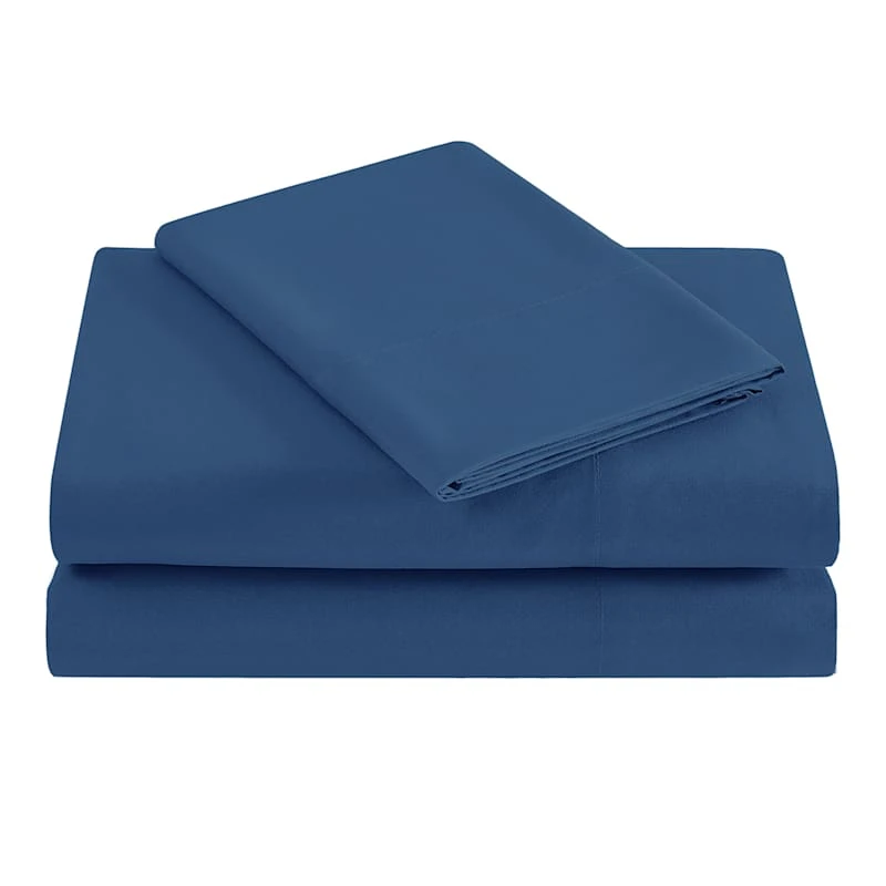 3-Piece Navy Blue Windowpane Check Comforter Set, Full/Queen